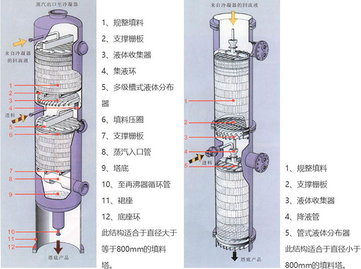 【填料塔】 規(guī)整填料塔的分離性能取決于內(nèi)件,即填料、分布器、收集器等。同時也取決于許多參數(shù),如氣體負(fù)荷、液體負(fù)荷、物料性質(zhì)、操作壓力、填料濕潤性能和液體分布不均勻等等。至今不能由填料的幾何形狀來精確計算塔的分離性能,需要通過填料塔的理論和不同條件下通過試驗塔來測定準(zhǔn)確數(shù)據(jù)。用戶可根據(jù)資料以一級近似程度確定塔的尺寸和需要的填料高度。如果需要經(jīng)濟、合理的結(jié)構(gòu)形式,我廠愿與用戶密切合作。